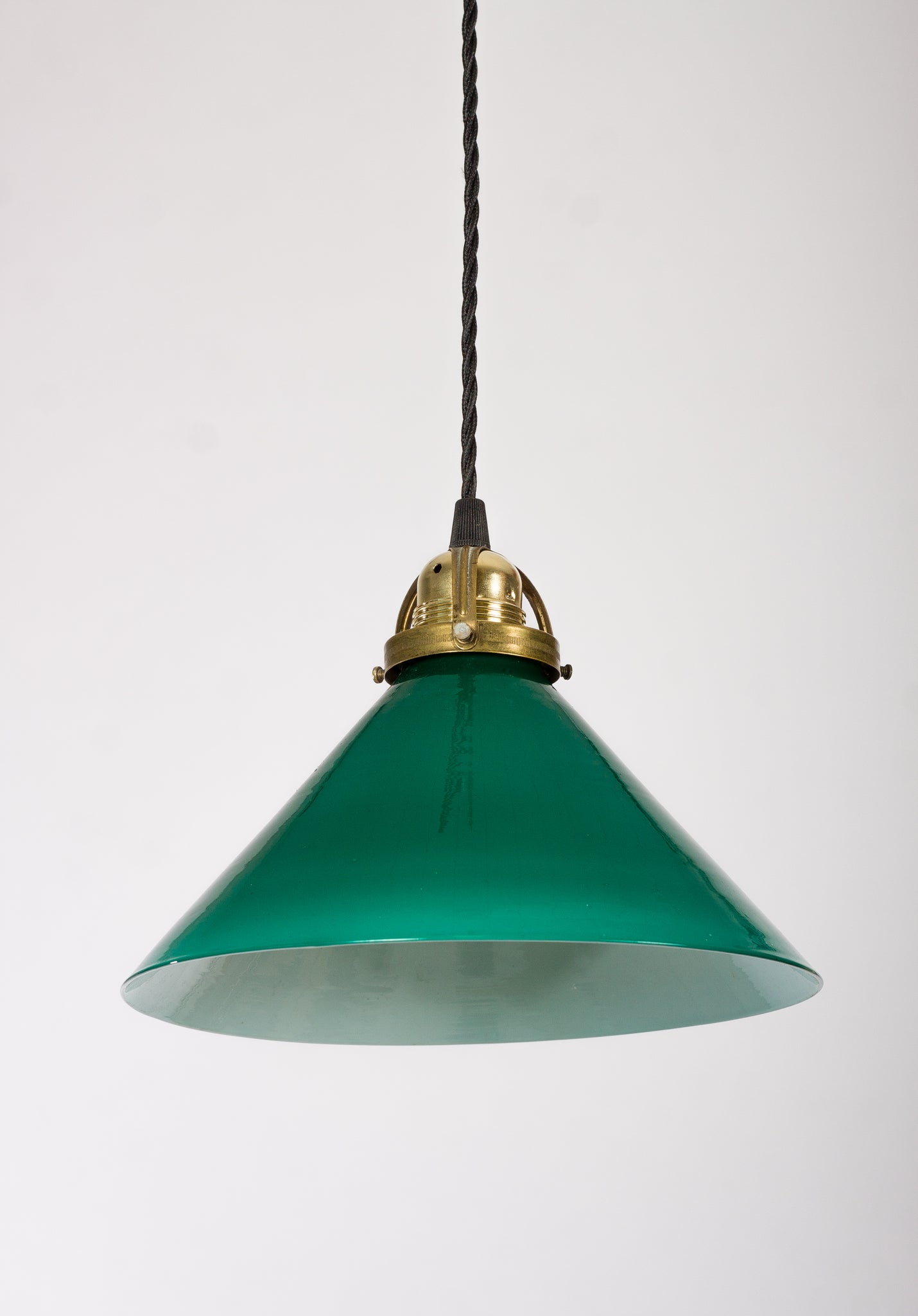 Monterad med fäste i mässing och svart tvinnad textilkabel.