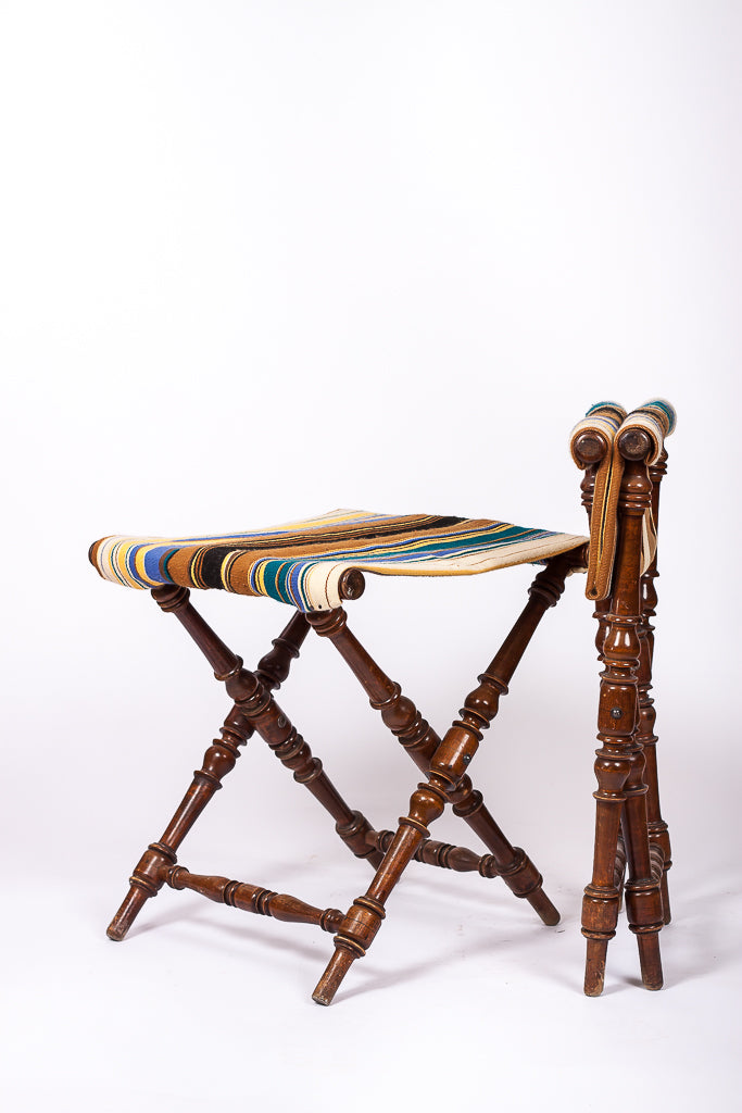 1 par hopfällbara pallar i kolonialstil med grönt mönstrat tyg