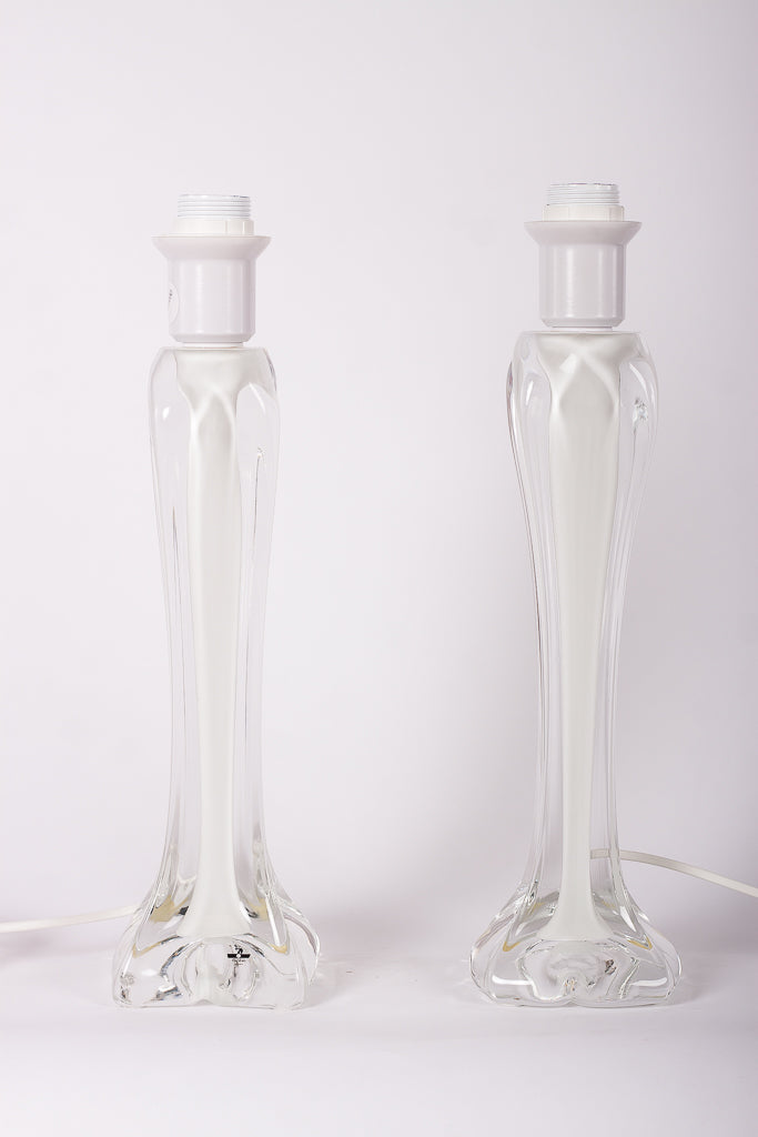 Paret eleganta bordslampor i vitt/genomskinligt glas.
